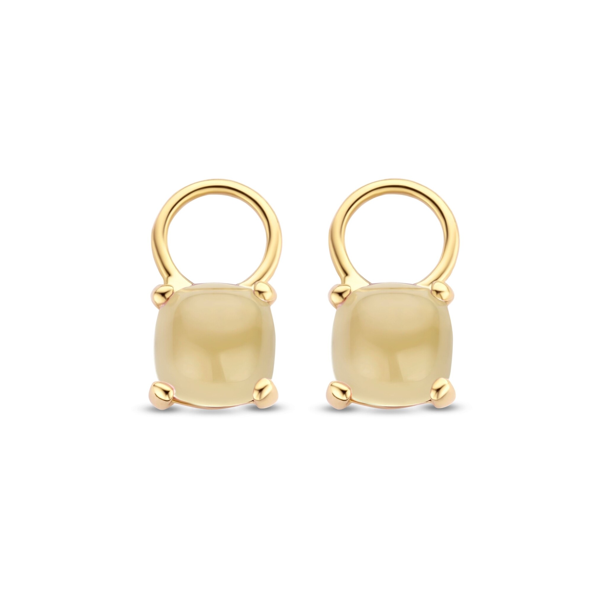 Account aanmakenGouden aanhangers met vierzijdig cabochon geslepen lemonkwarts gezet in een chatonzetting met vier zetpootjes. De afmetingen van de edelstenen zijn 8 x 8 millimeter. Keuze uit 5, 6 of 7 mm. diameter voor het oogje (past aan oorringen Amsterdam en Haarlem). De aanhangers zijn verkrijgbaar in 14 of 18 karaat geel-, rosé of witgoud.